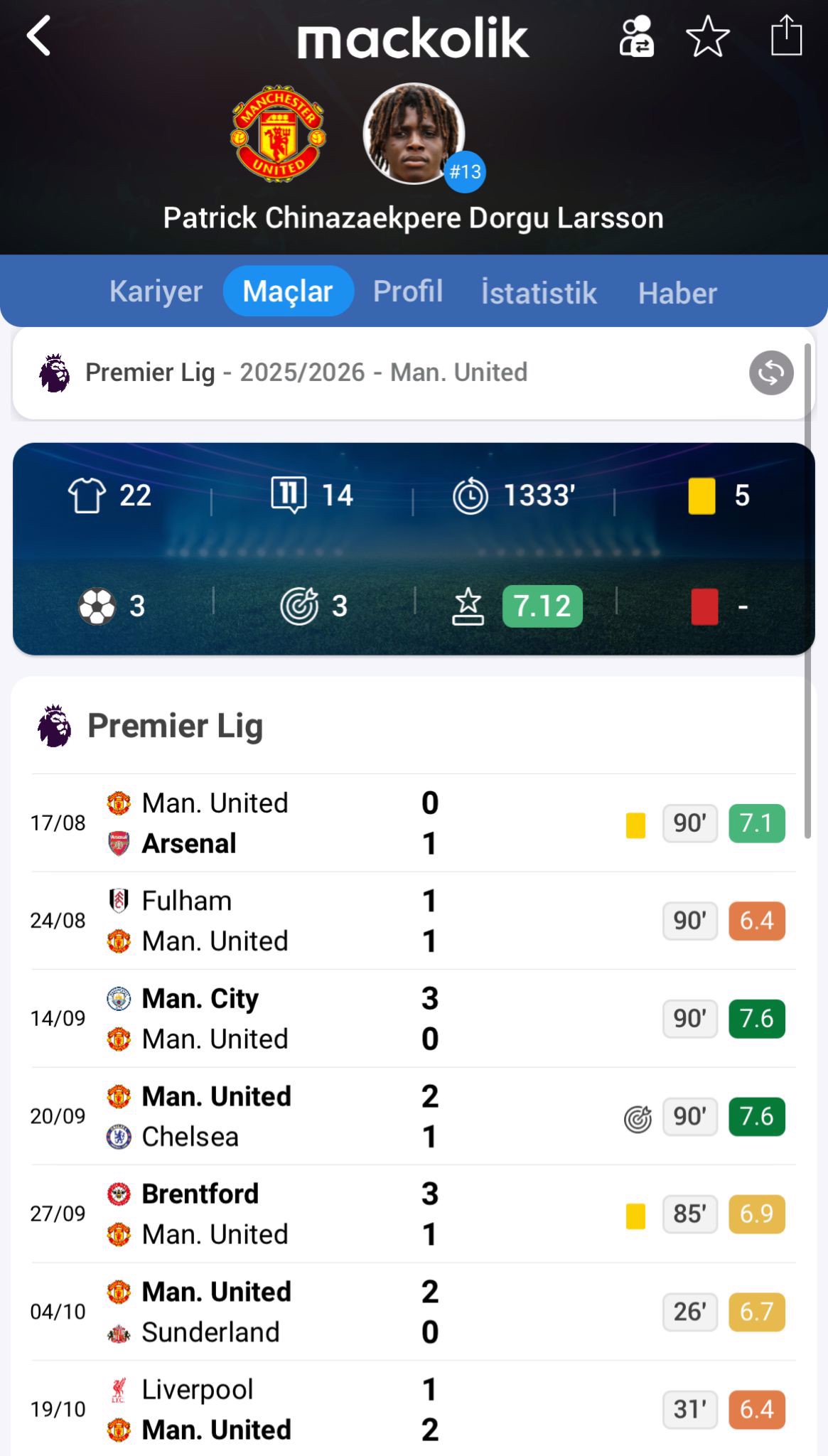 Bu sezon Premier Lig'de 22 maça çıkan Dorgu, üç gol ve üç asistlik performans sergiledi.