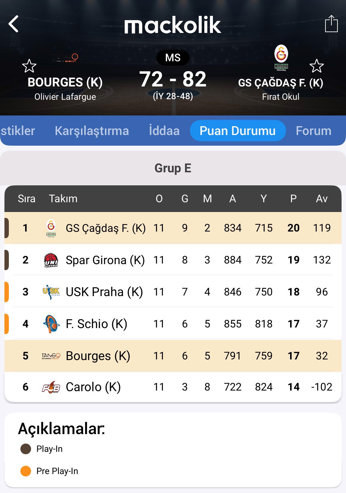 Sarı-kırmızılı takım, bu sonuçla 9. galibiyetini aldı. Tango Bourges Basket ise 5. yenilgisini yaşadı.
