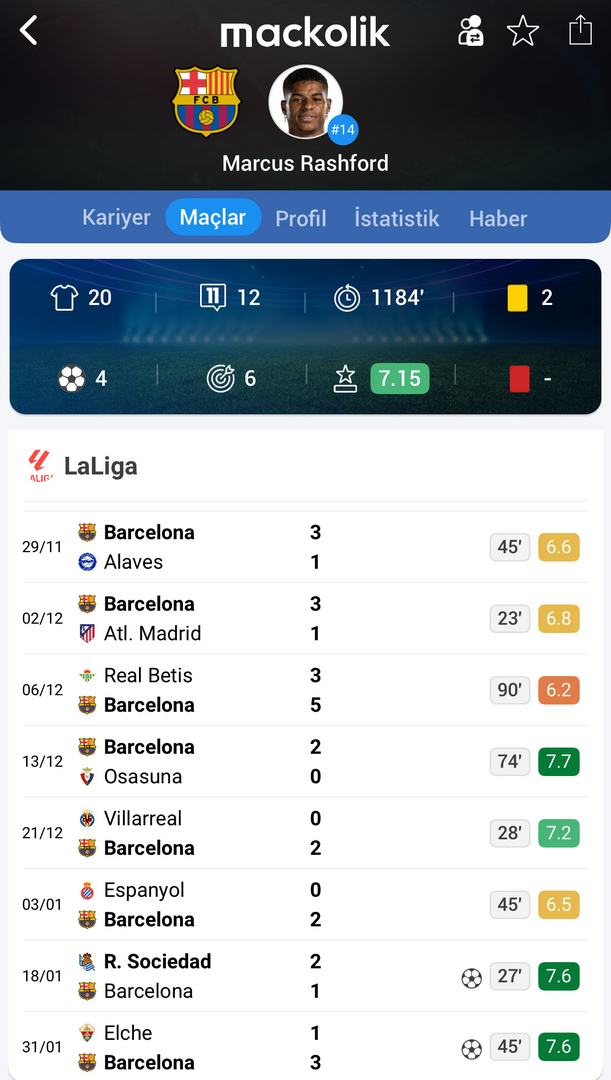 Rashford, Manchester United'daki kariyerini, eski teknik direktör Ruben Amorim ile yaşadığı sorunların ardından noktalamıştı. Barcelona'da ise yeniden çıkışa geçen yıldız futbolcu, bu sezon 32 maçta 10 gol ve 9 asistlik katkı sağladı.