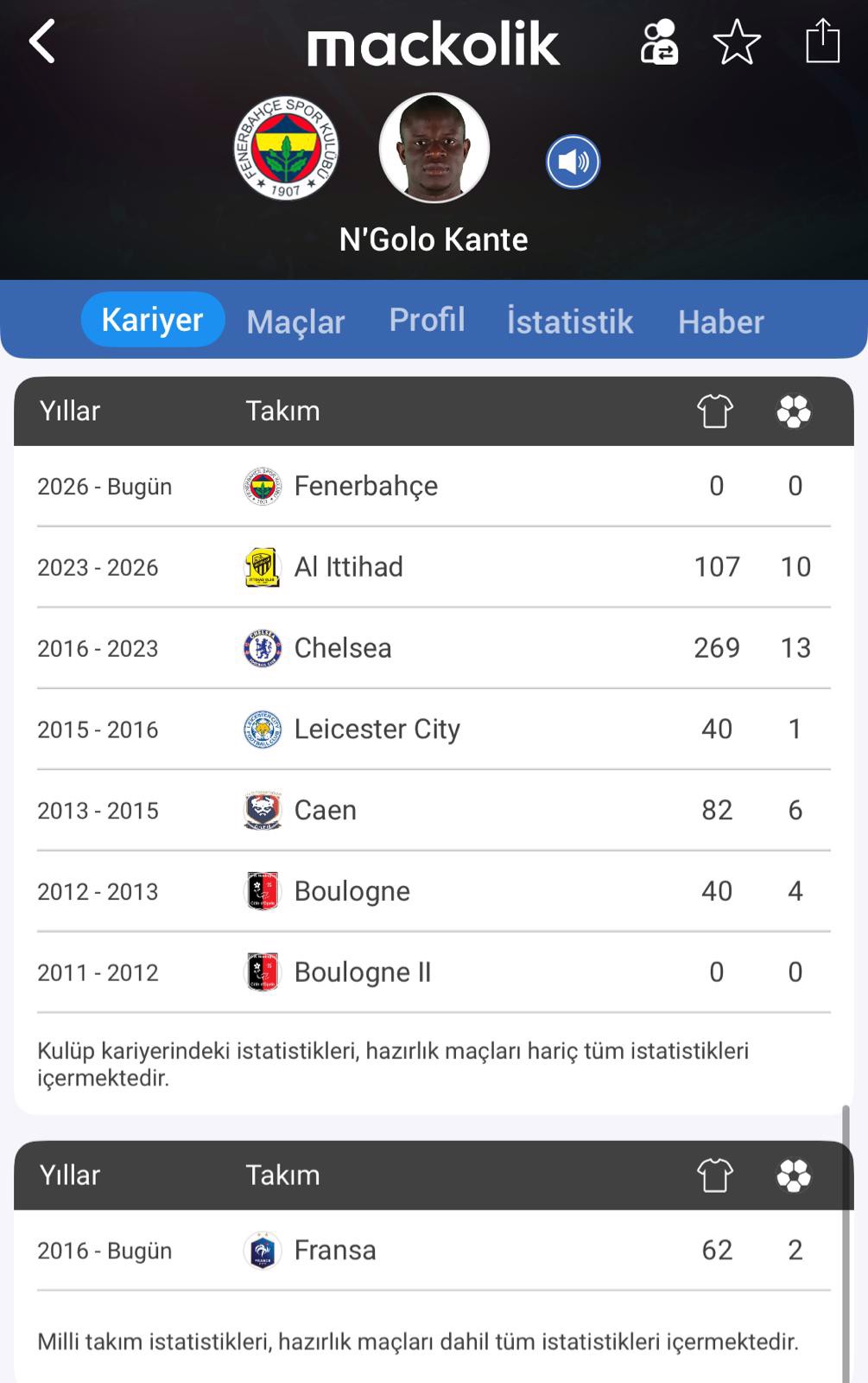 Ülkesinde Boulogne ve Caen formaları giyen N'Golo Kante, 2015 yazında İngiliz ekibi Leicester City'ye imza attı.