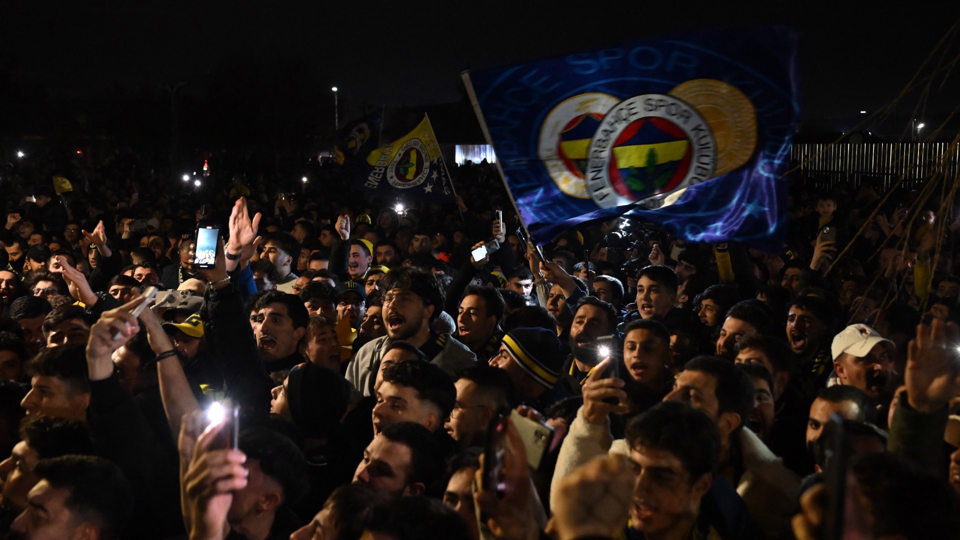 Havalimanını dolduran sarı-lacivertli taraftarlar, yıldız oyuncuyu meşaleler yakıp tezahüratlar yaparak bekledi.
