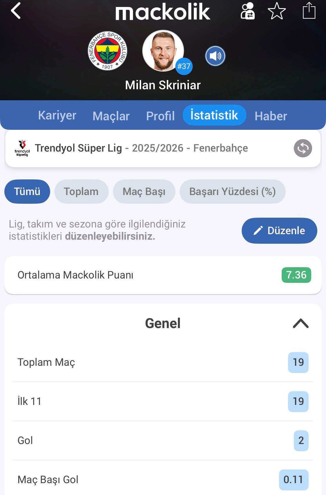 Türkiye Futbol Federasyonu Profesyonel Disiplin Kurulu, Fenerbahçeli Milan Skriniar, Kocaelispor karşılaşmasında hakareti nedeniyle 2 maç ceza verdi.