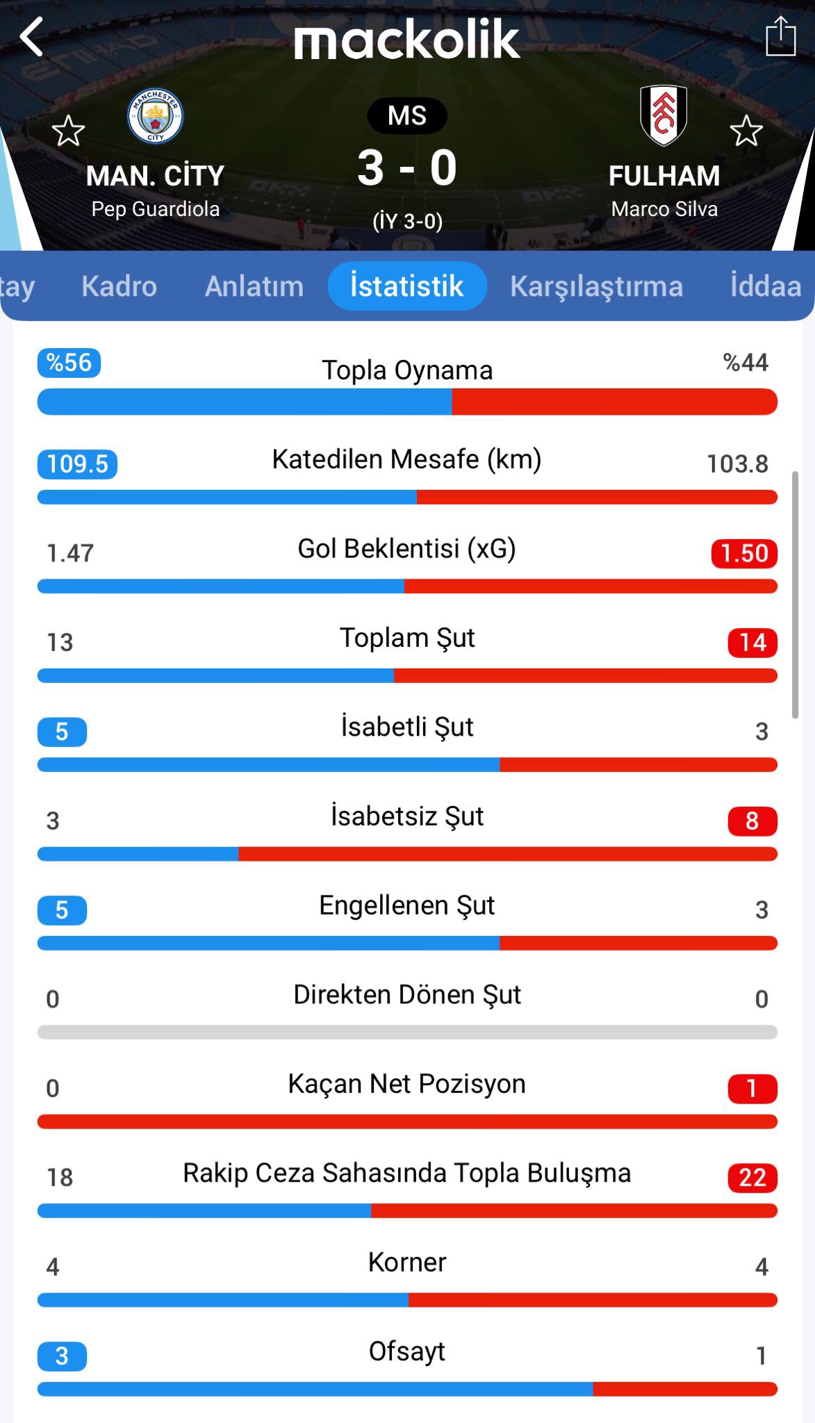 Karşılaşmanın ilk yarısı 3-0 Manchester City üstünlüğüyle bitti.