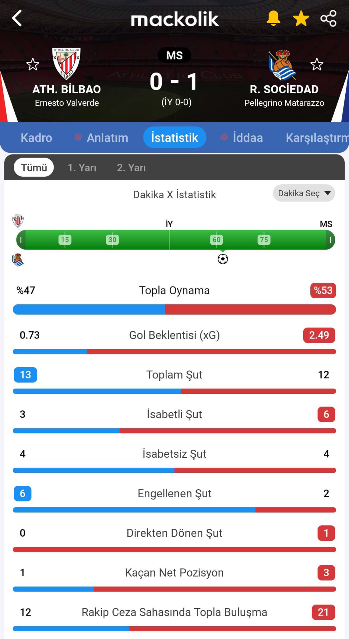 Bu sonuçla Real Sociedad, 4 Mart'ta oynanacak rövanş öncesi önemli bir avantaj elde etti.