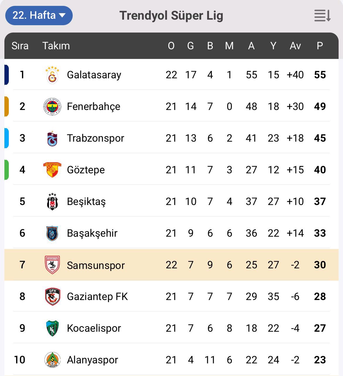 Kırmızı-beyazlı ekip 22 maçta topladığı 30 puanla 7. sırada yer alıyor.
