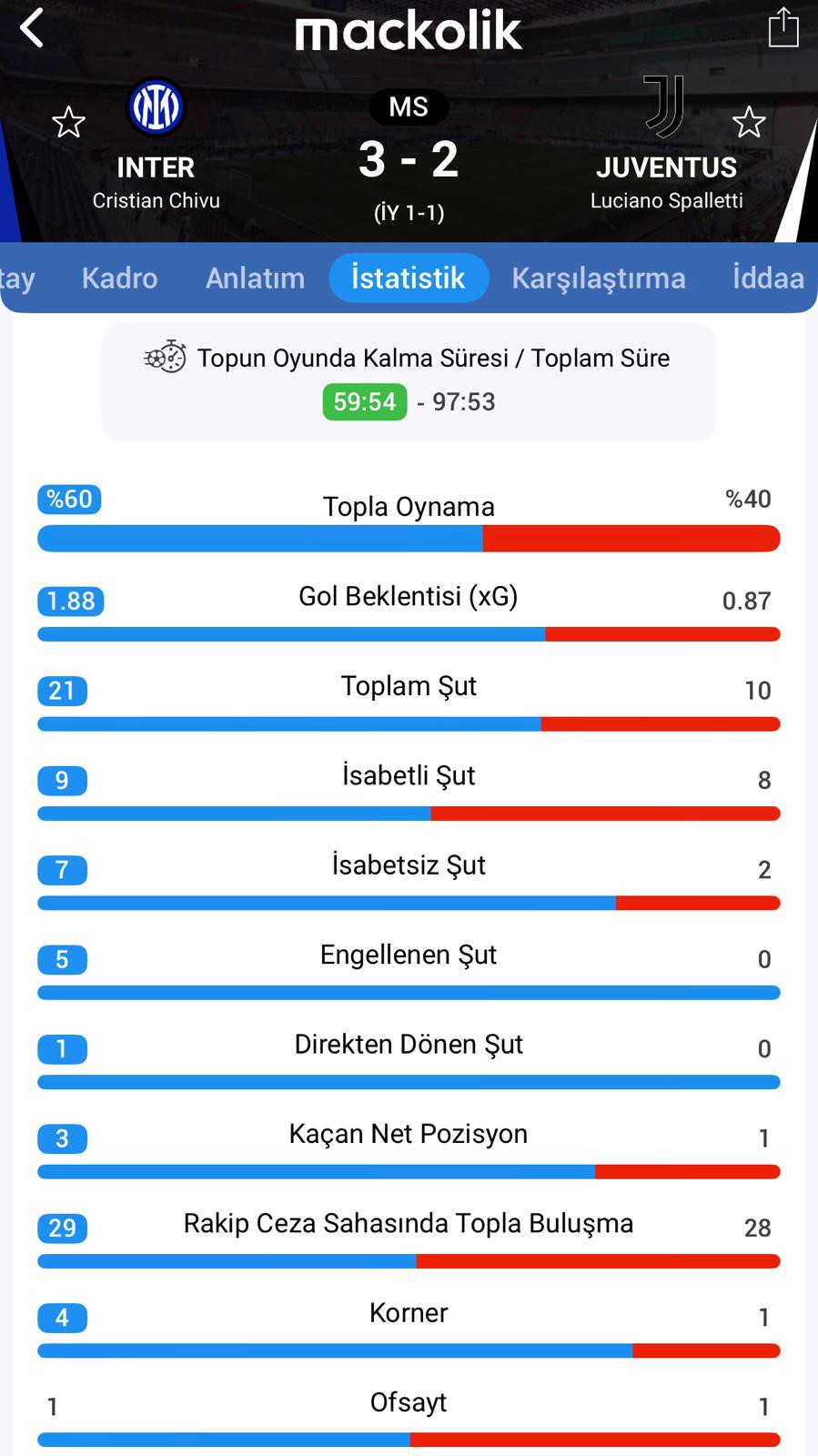 Serie A'nın 25. haftasında Inter, San Siro'da Juventus'u 3-2'lik skorla devirdi. Ev sahibinde yedek kulübesinde maça başlayan Hakan Çalhanoğlu ikinci yarıda oyuna dahil olarak 1 ay sonra sahalara döndü. Siyah-beyazlılarda ilk 11'de başlayan Kenan Yıldız ise 75. dakikada oyundan çıktı.