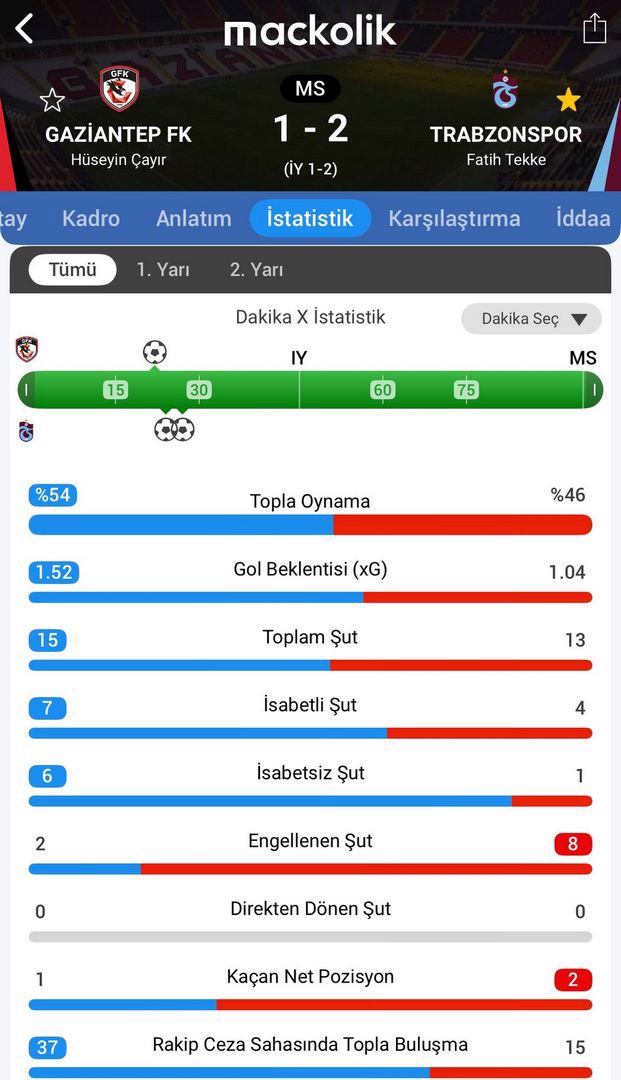 Süper Lig'in 23. haftasında Trabzonspor deplasmanda Gaziantep FK ile karşı karşıya geldi.