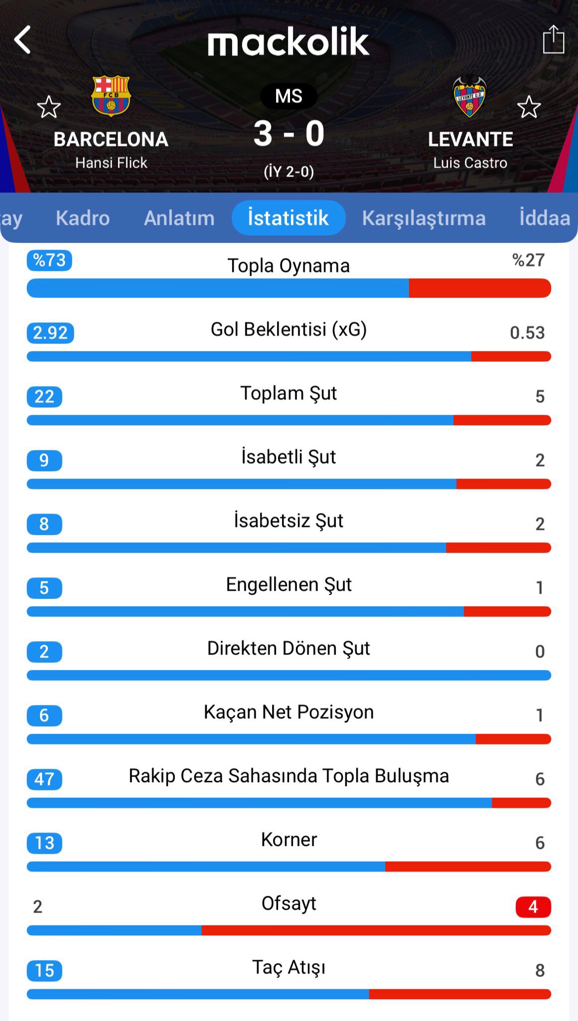 LaLiga'nın 25. haftasında Barcelona, sahasında Levante'yi konuk etti.