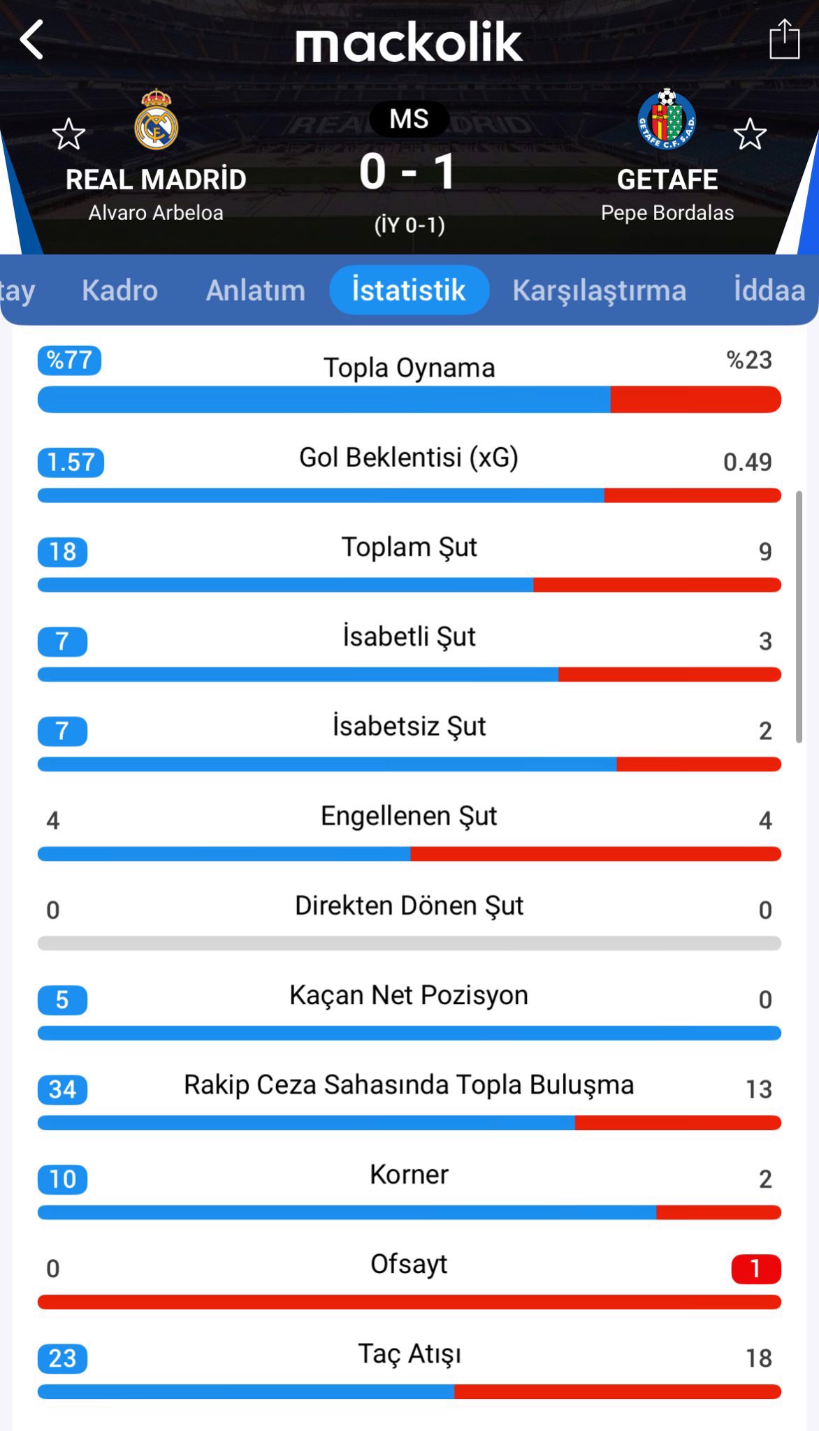 Maçtan istatistikler