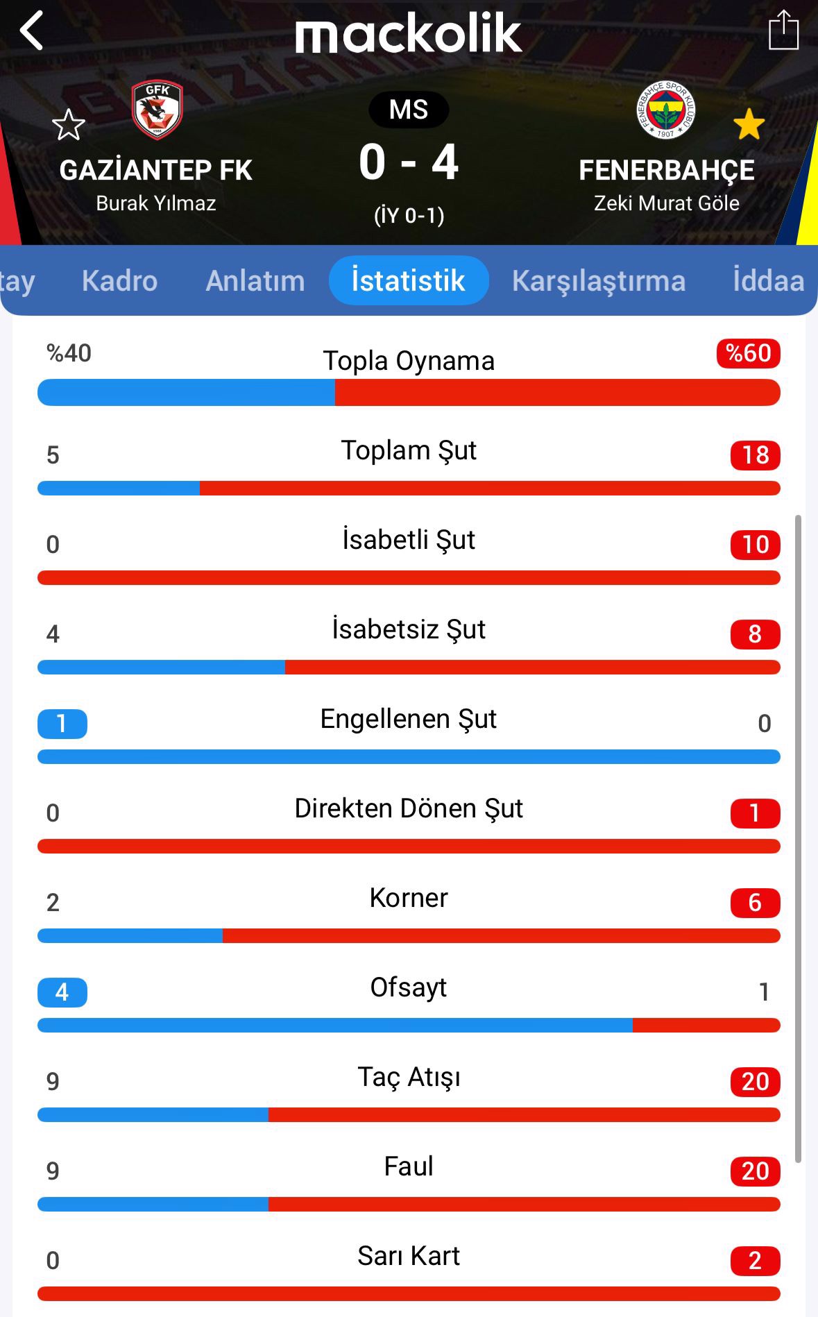 Maçtan istatistikler