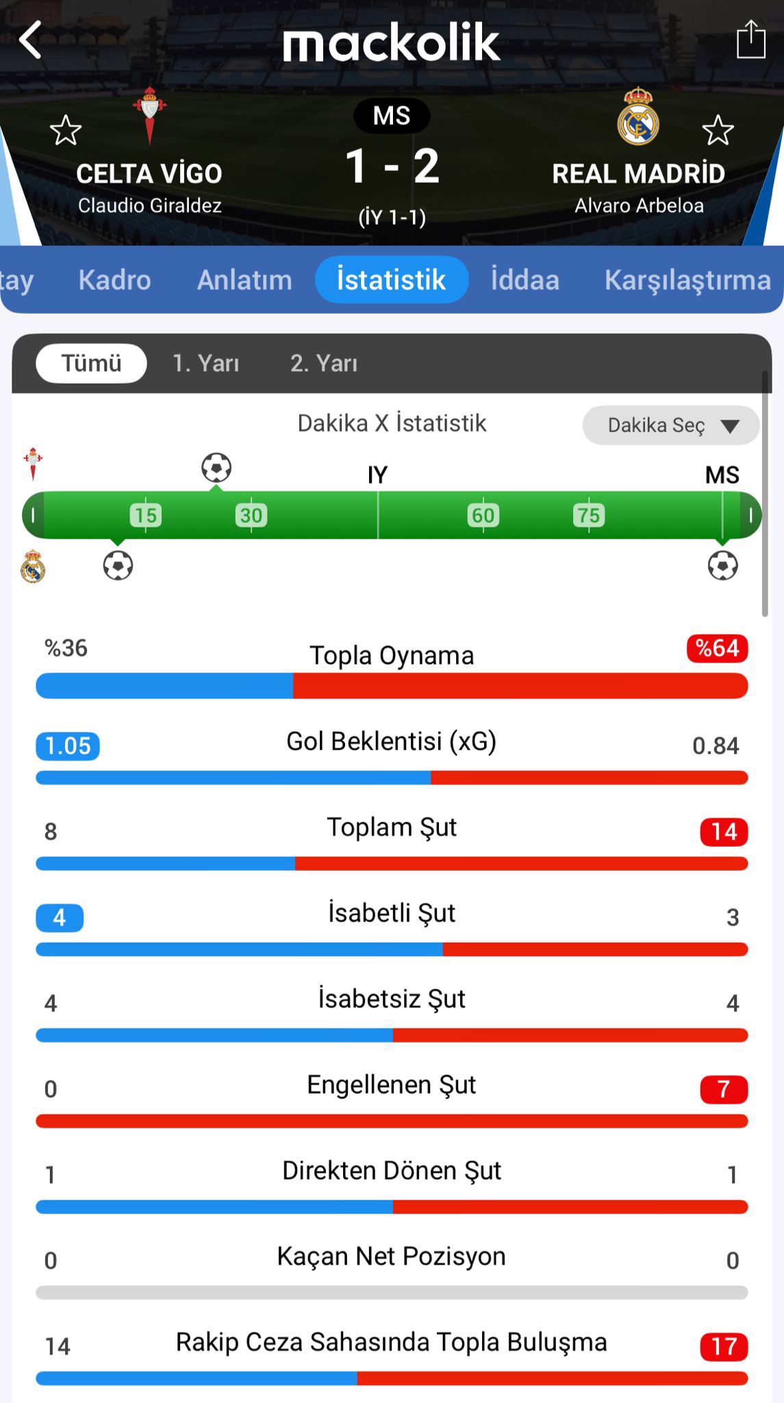 Maçtan istatistikler