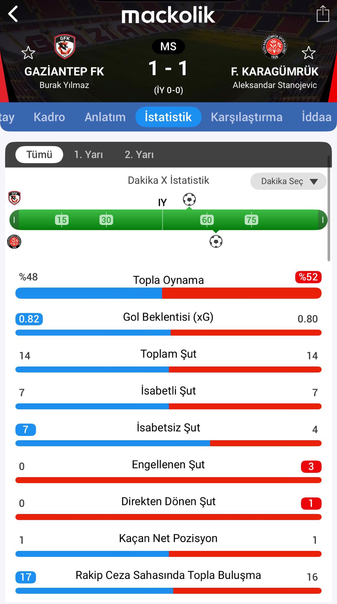 Maçtan istatistikler