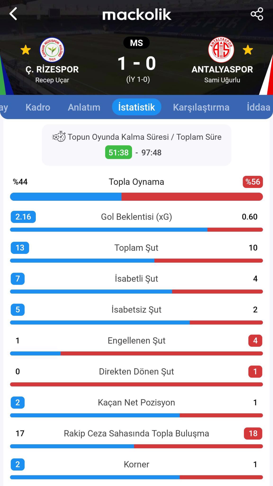 Karşılaşmada başka gol olmadı ve Rizespor evinde Antalyaspor'u 1-0 mağlup etti.