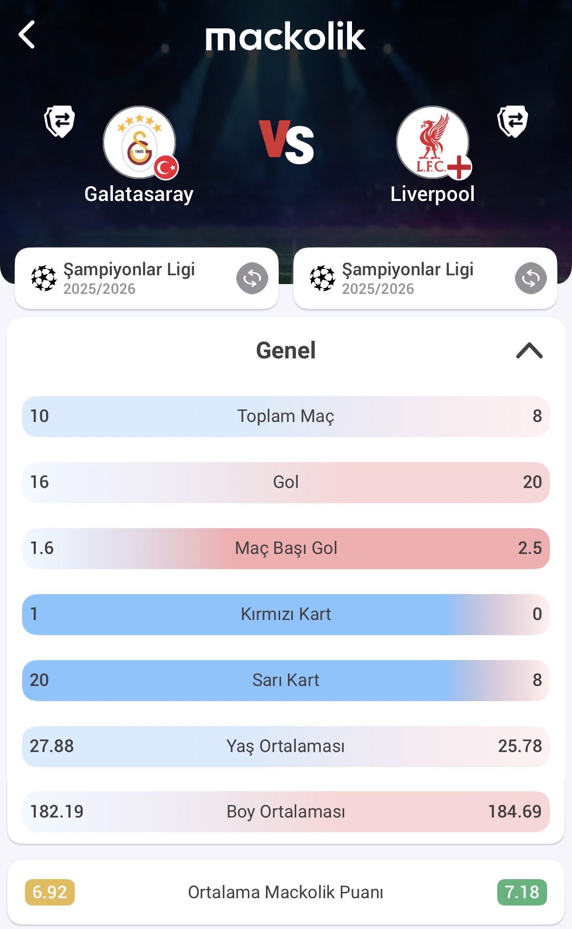 Galatasaray, UEFA Şampiyonlar Ligi son 16 turunda Liverpool'u konuk edecek. İki takımın bu sezon turnuvadaki istatistiklerini Mackolik'in 'Takım Karşılaştırma' özelliğiyle inceledik.