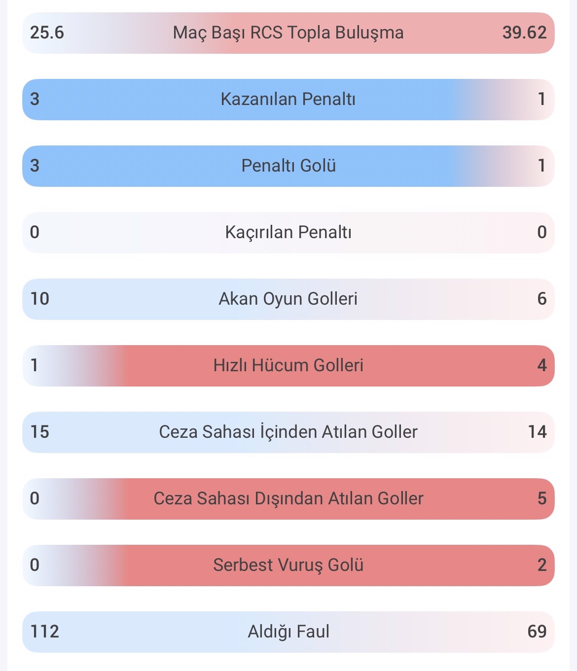 Okan Buruk'un öğrencileri bu sezon UEFA Şampiyonlar Ligi'nde 10 golü akan oyundan bulurken, Liverpool'da bu sayı 6'da kaldı. Ceza sahası içinden atılan gollerde de sarı-kırmızılılar 15 golle rakibinin (14) önünde yer aldı. Liverpool 4 kez hızlı hücum ile fileleri sarsarken Galatasaray ise 1 kez topu ağlarla buluşturdu. Duran toplarda ise farklı istatistikler öne çıktı. Galatasaray 3, Liverpool ise 1 penaltı kazandı. İki takım da beyaz noktada hata yapmadı.